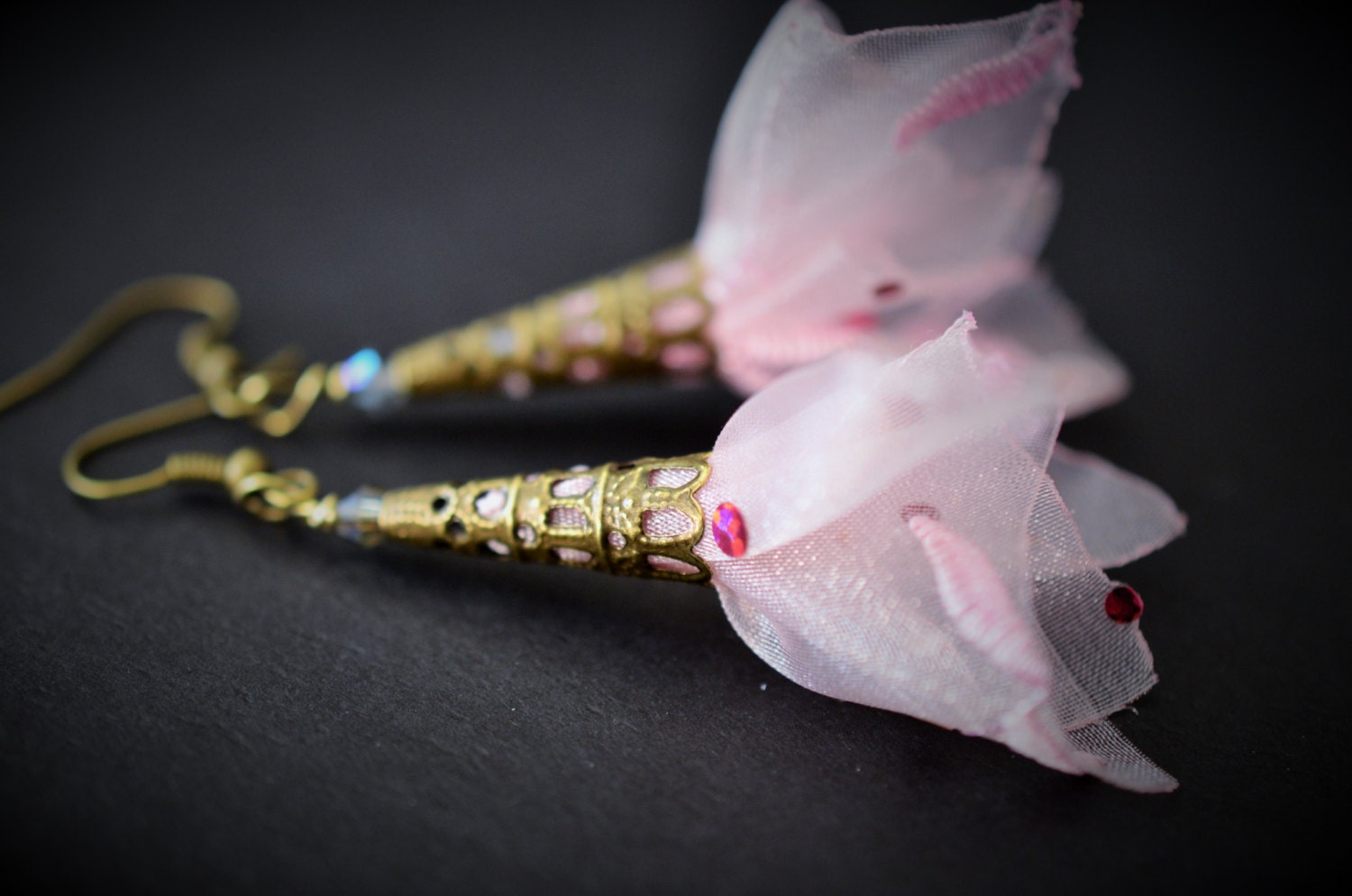 Beautiful and romantic soft pink organza earrings with pink glitter details, perfect for this season.