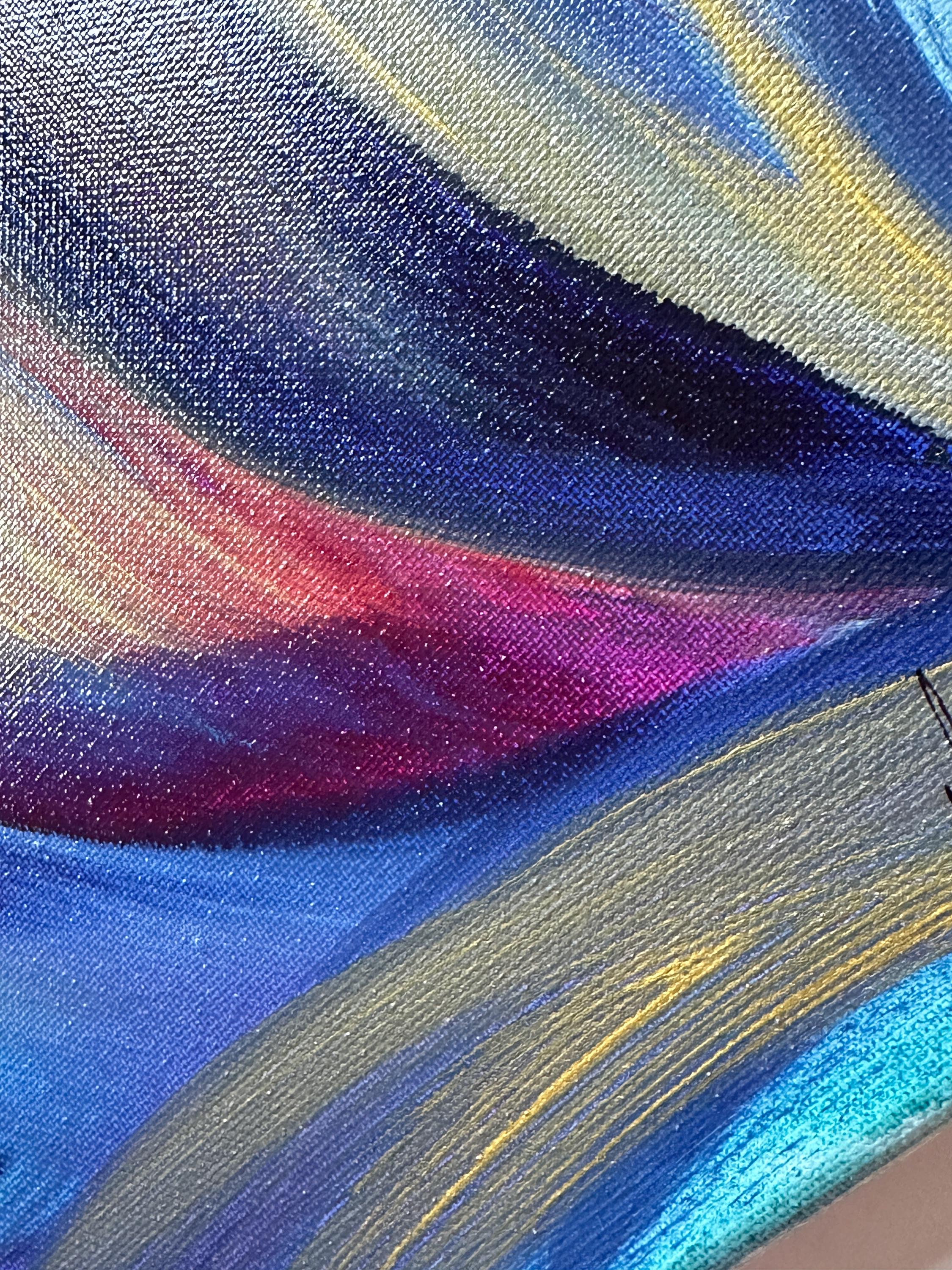 She been created on a gallery wrapped stretched canvas using professional grade acrylic paint and ink with bold brushstrokes with a hint of gold metallic paint. This abstract mixed media painting is represents the slightest movements of our breath how is our DNA dissolving in the air..
