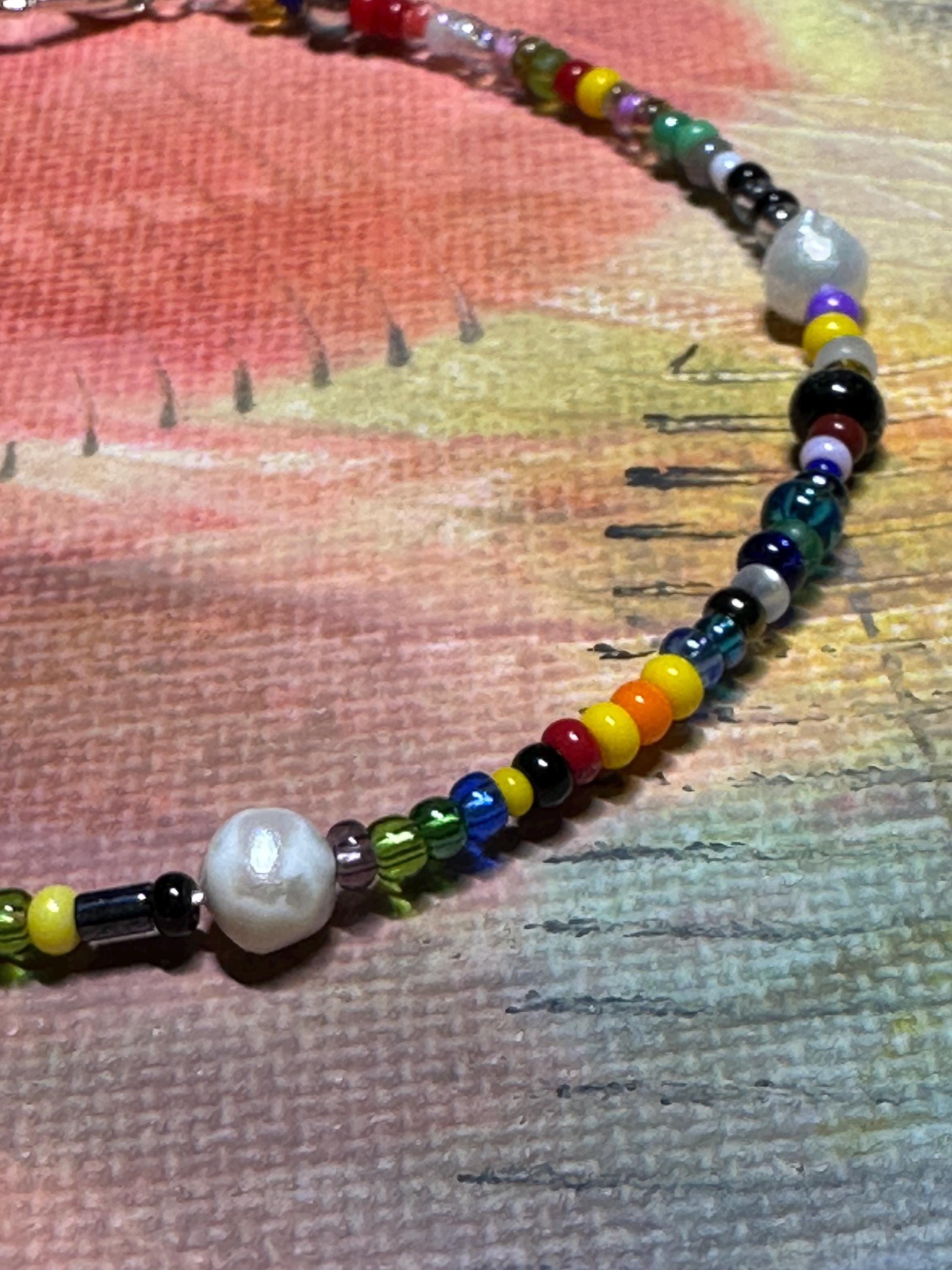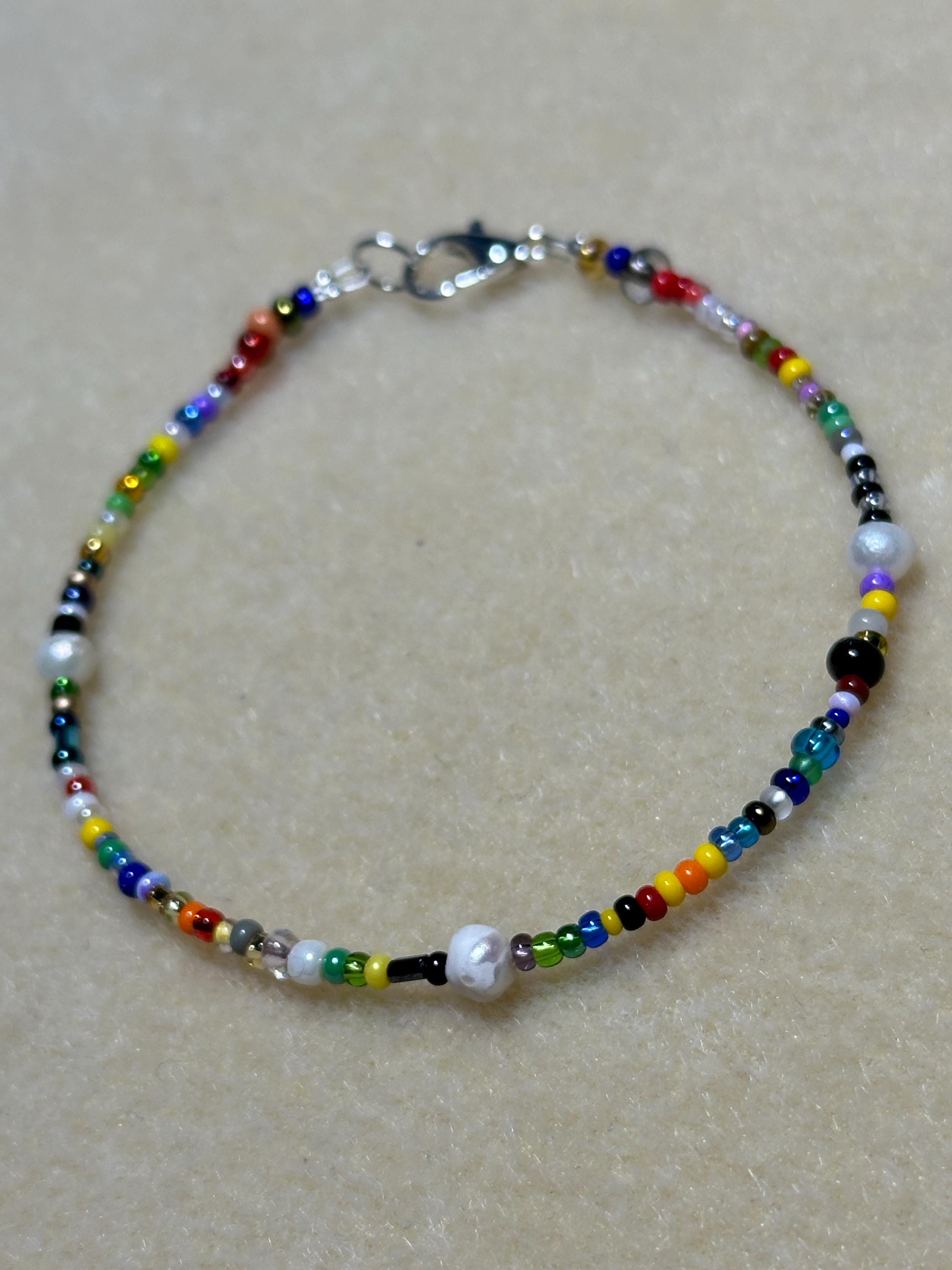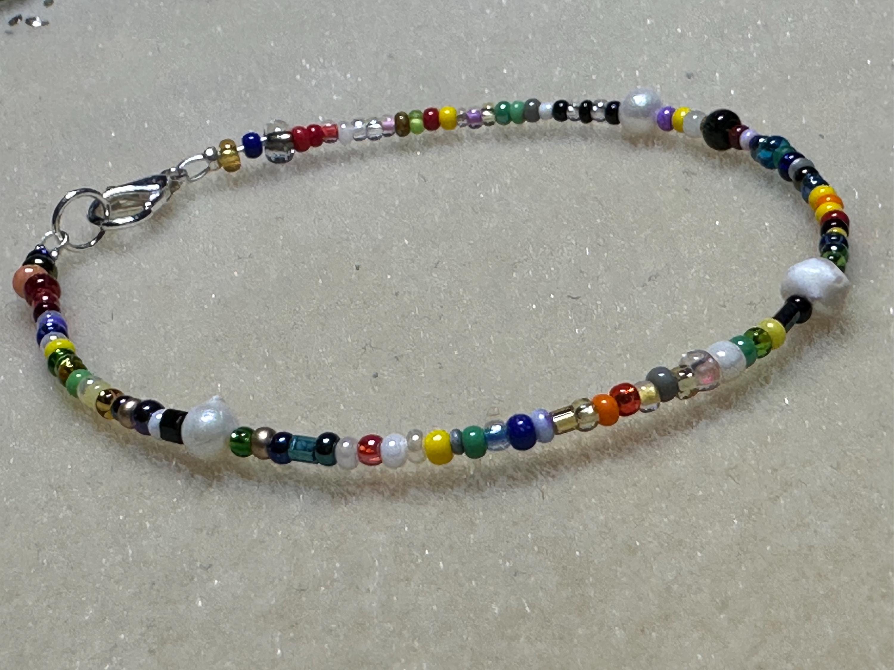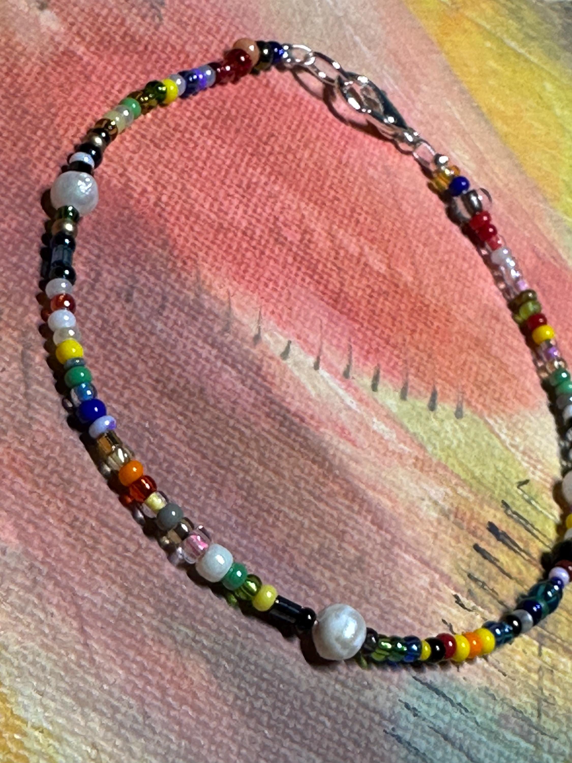 Boho Czech glass beads bracelet with freshwater pearls handmade and one of a kind fairycore princesscore